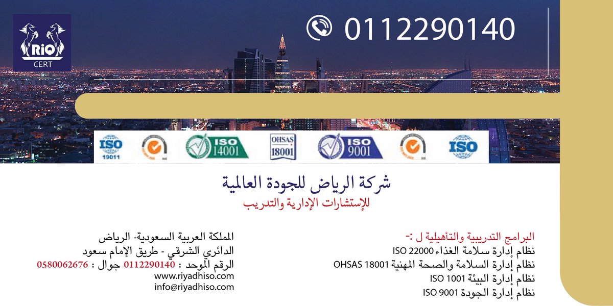 شركة الرياض Riq لشهادات ايزو Iso On Twitter تعرف على برامج شركة الرياض للجودة العالمية للتدريب والتأهيل Https T Co Pwvte40ioo تدريب تأهيل Https T Co Lzbrmfyde9
