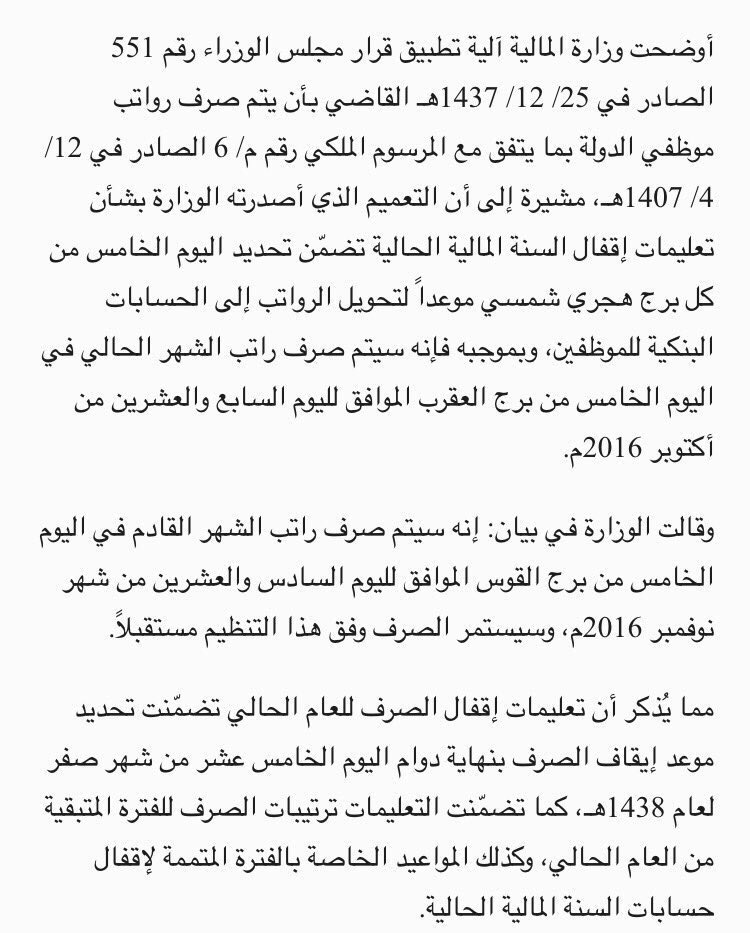 أخبار السعودية Na Twitteru وزارة المالية توضح آلية صرف رواتب موظفي الدولة اليوم الخامس من كل برج هجري شمسي موعدا لتحويل الرواتب إلى الحسابات البنكية للموظفين Https T Co W1grvsesmr