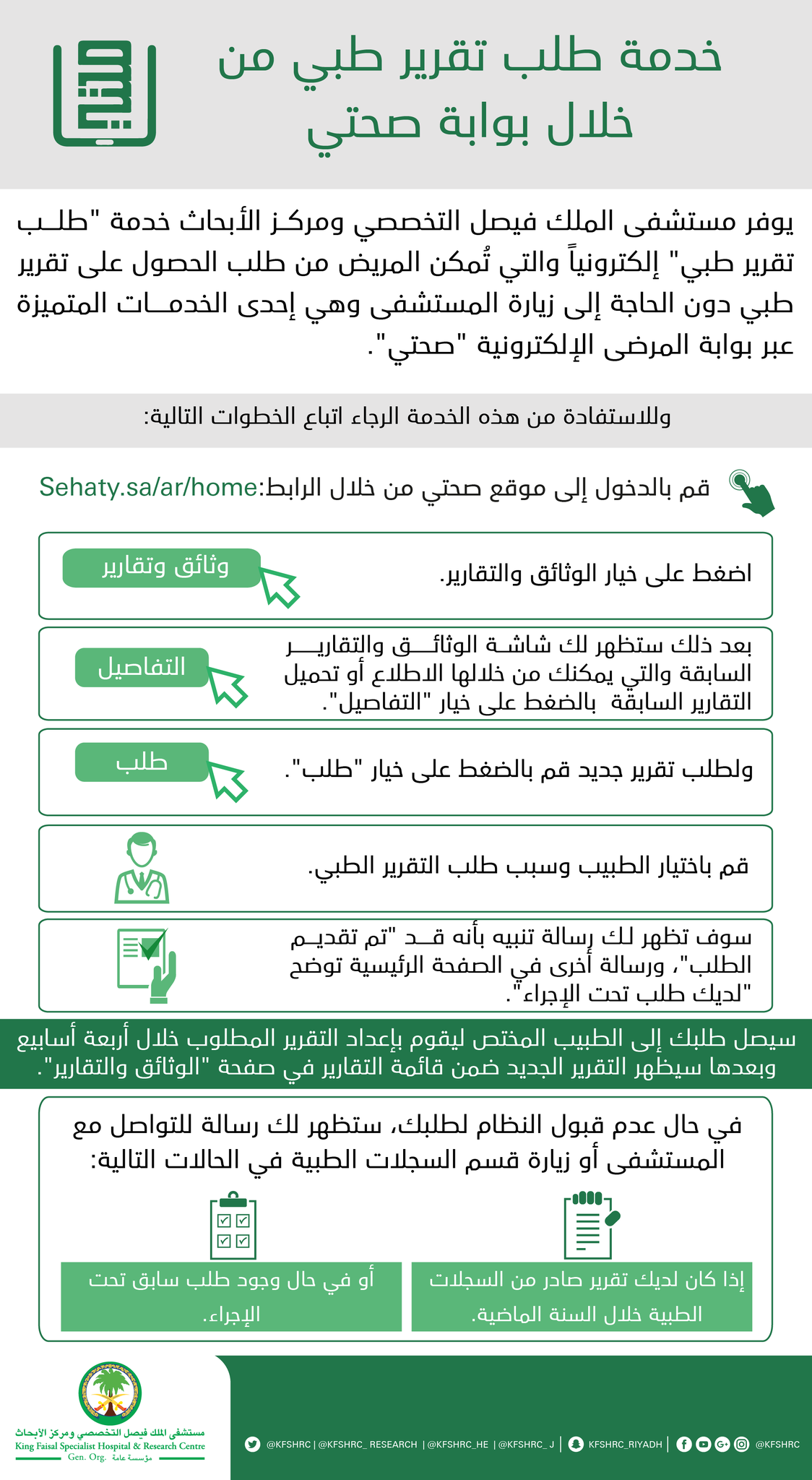 مستشفى الملك فيصل ا لـ تـ خـ صـ صـ ي بالرياض On Twitter خدمة طلب تقرير طبي من خلال بوابة صحتي مستشفى الملك فيصل التخصصي انفوجرافيك Https T Co Tcwxk3lkrx