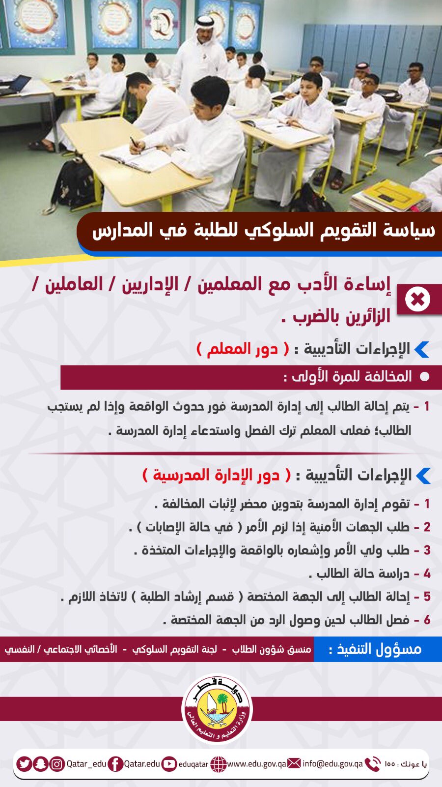 وزارة التعليم على تويتر إساءة الأدب مع المعلمين إحالة الطالب إلى إدارة المدرسة طلب الجهات الأمنية إذا لزم الأمر طلب ولي الأمر إحالة الطالب للجهات المختصة فصل الطالب لحين وصول رد الجهة