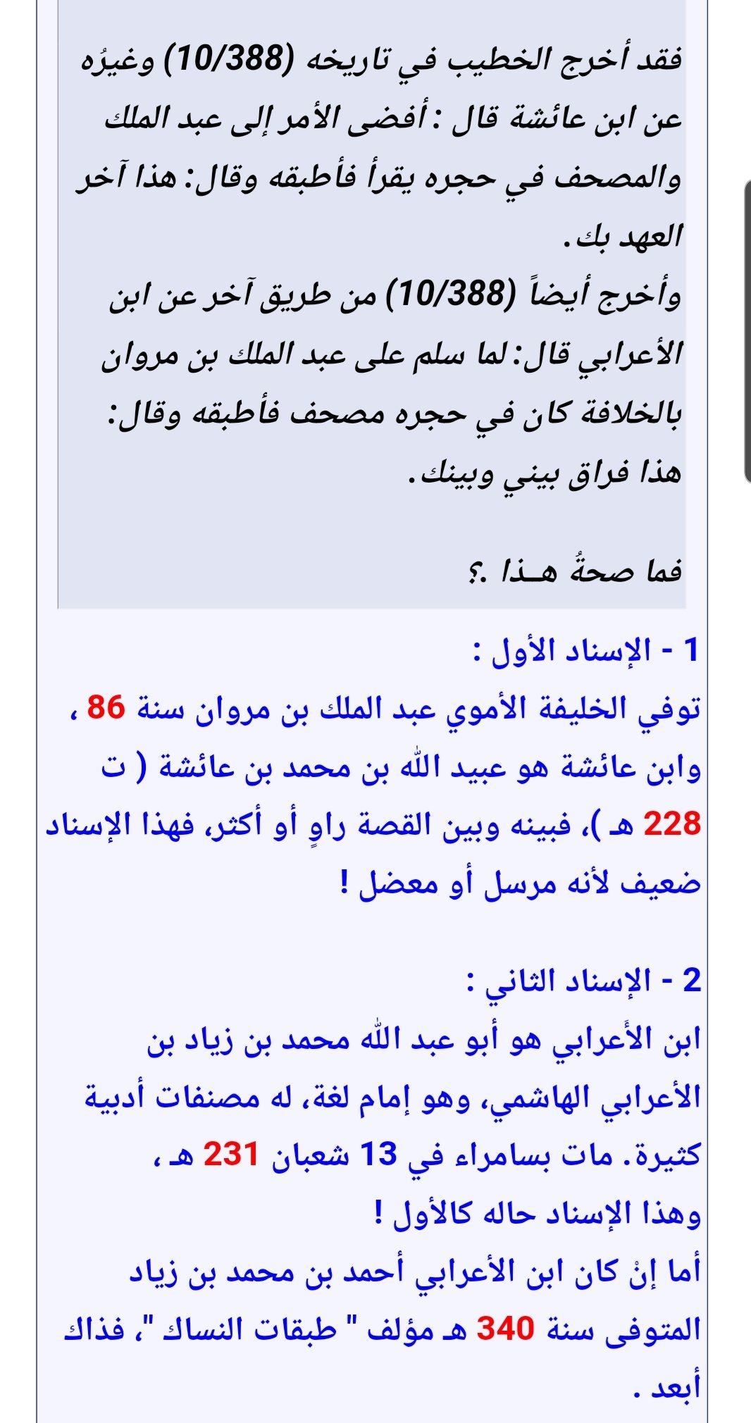 أحمد البــكل على تويتر أما قصة عبد الملك بن مروان فوصلتنا من طريقين والطريقين مرسلين أي أن الحكاية لا سند متصل لها انظر الصورة وحتى لو صحت فلماذا أولتها التأويل البشع الذي